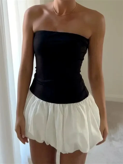 Women Flower Tube Top Dress Slim Off Shoulder Sleeveless Backless Mini Bodycon Dress for Party Club