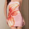 Women’s Mini Bandeau Dress Sleeveless Off Shoulder Butterfly Print Tube Top Dress